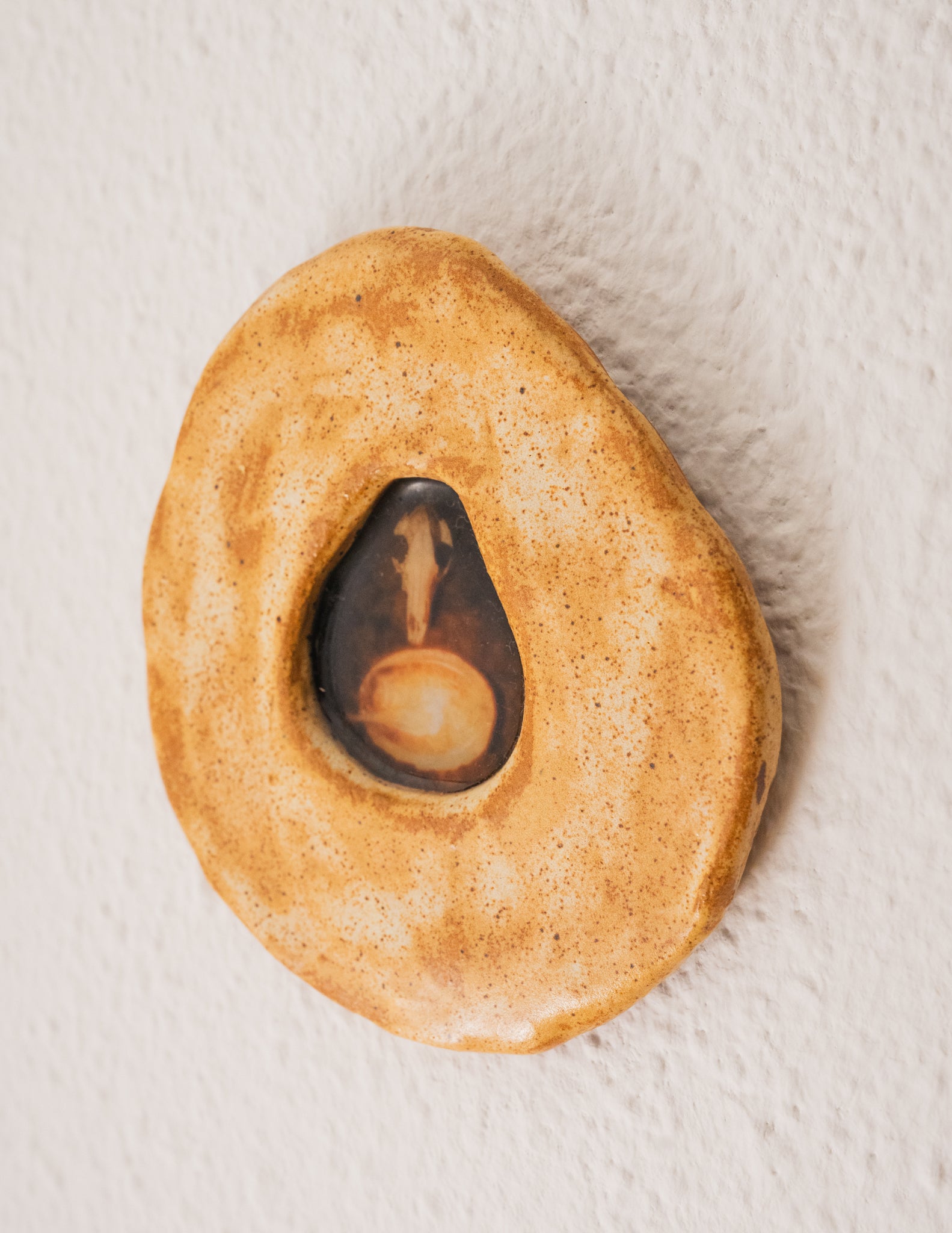- Technique/materials: Ceramic, photo print, epoxy, felt backing.