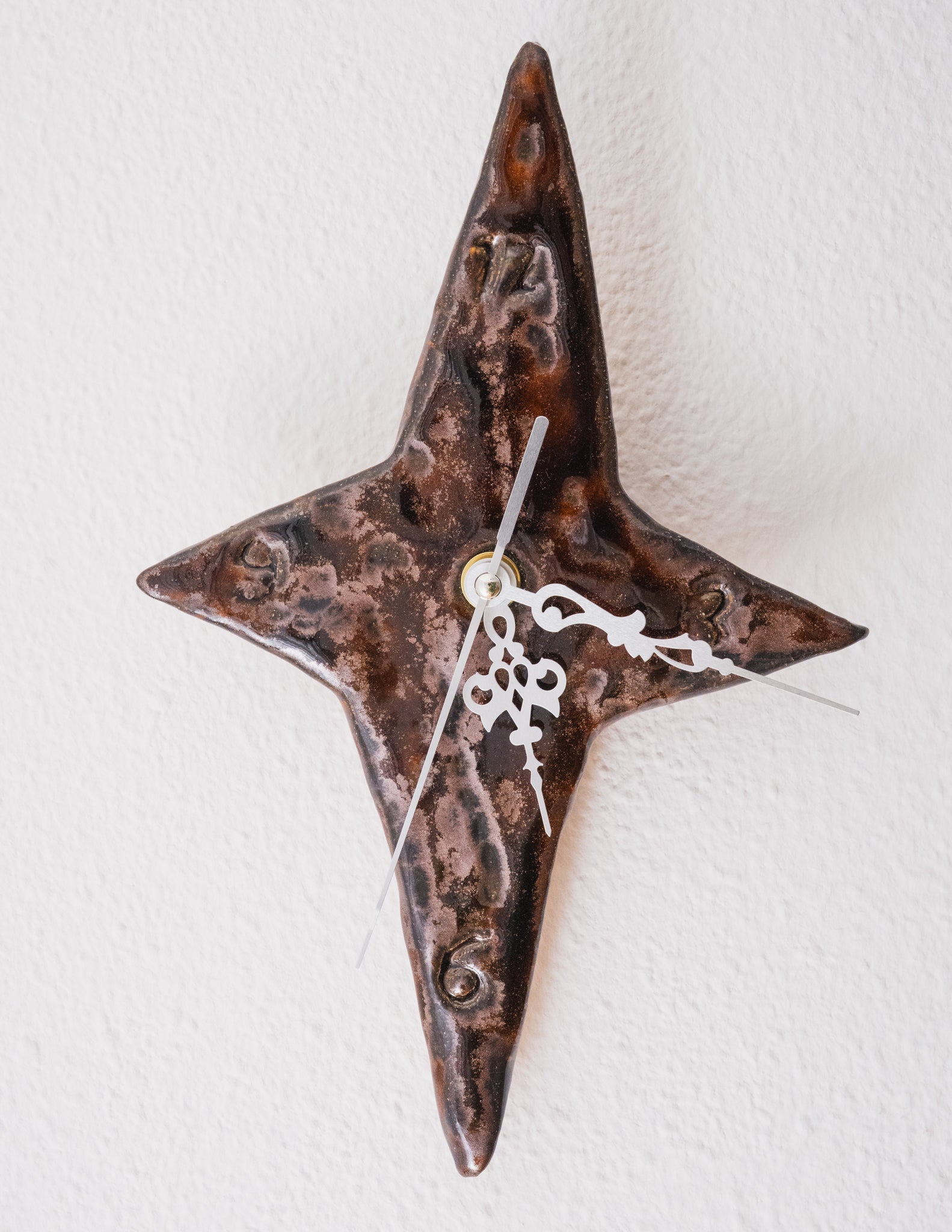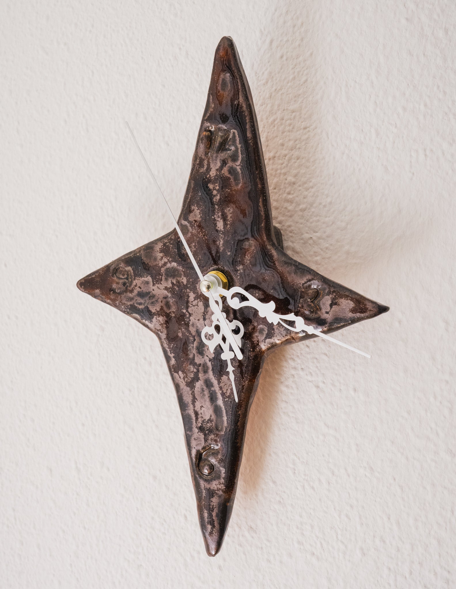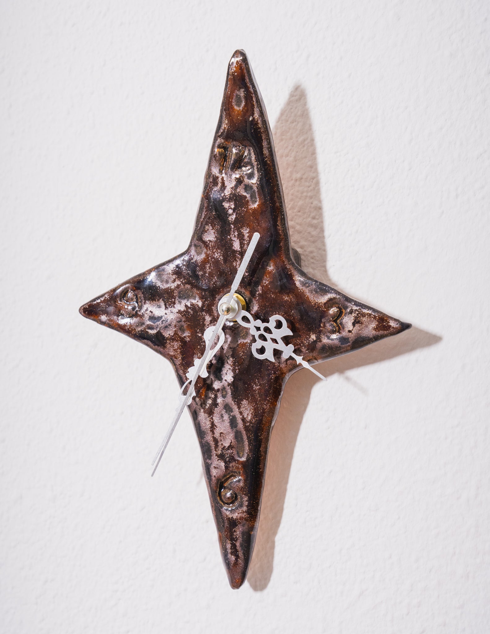 Many stars among the sky, but this one always stays. The four point star points the way, let her guide you night and day. This clock design originated from the multimedia project Fever Dreams of a Hermit, 2022.