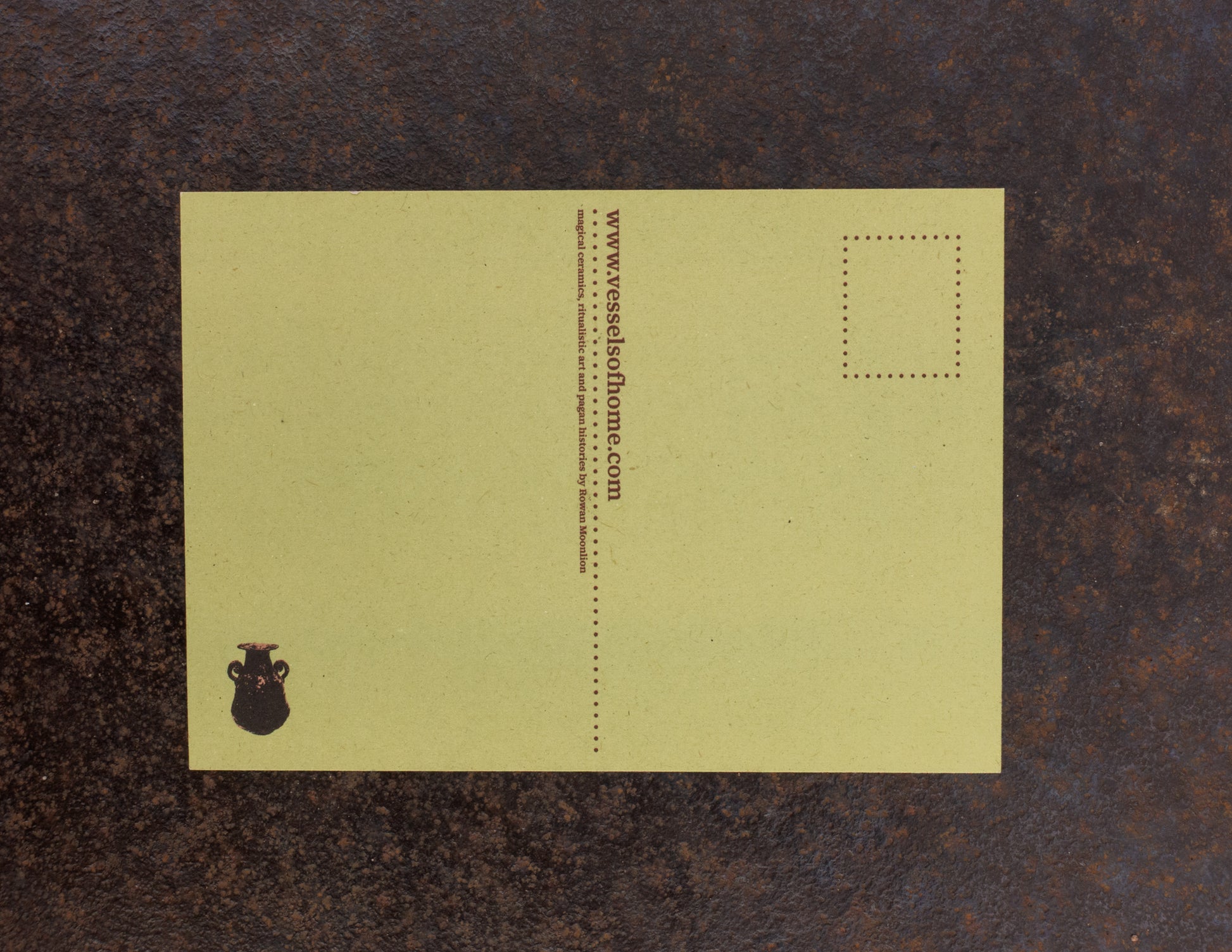 Whimsical postcard with a photograph of a ceramic castle with a lit candle. This one’s for all the medieval castle lovers. Add it to a wrapped gift, send it to a forgotten friend, hang it on your fridge or frame it; this postcard suits any situation.