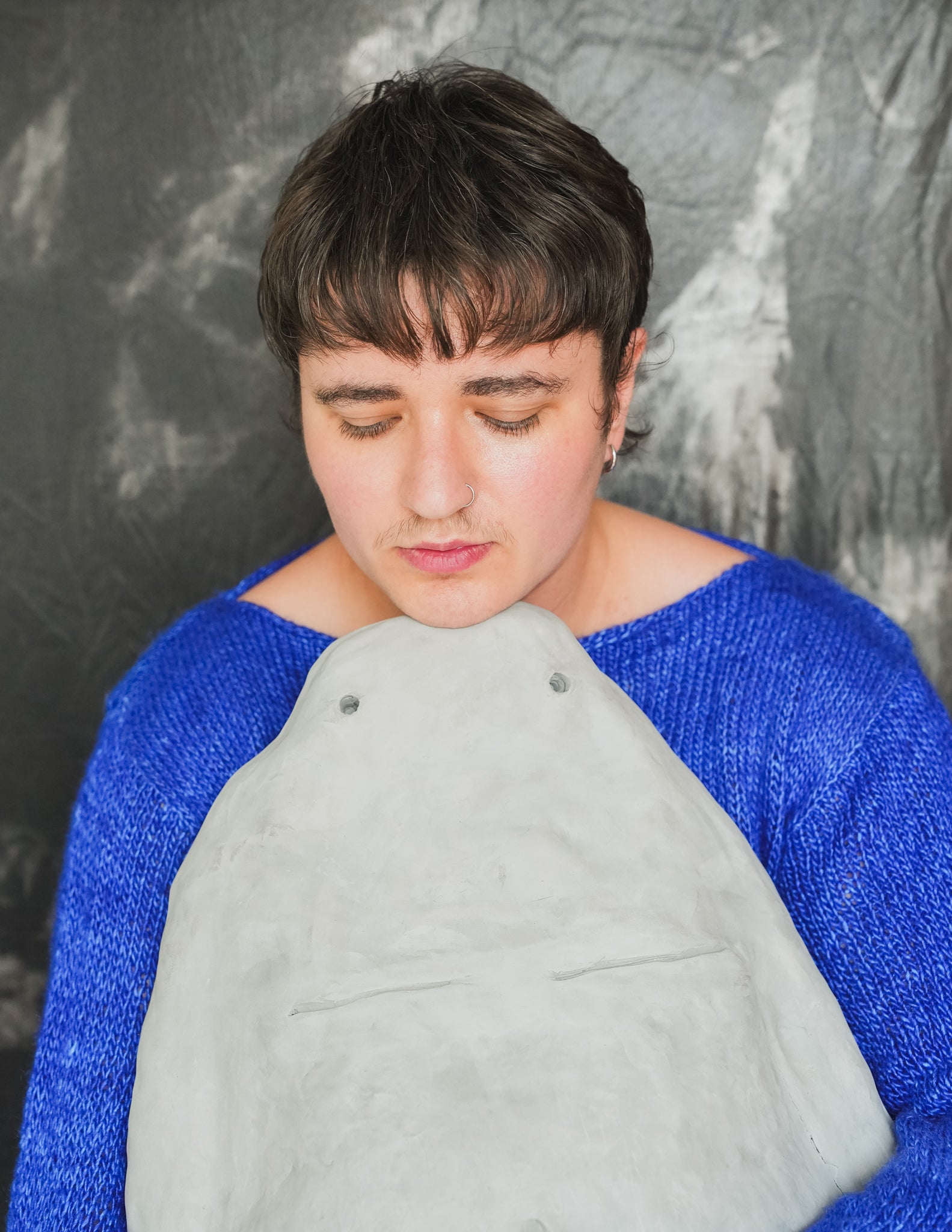 In Jewish folklore, golems are protective beings shaped from earth. They are wordless watchers, caretakers, defenders. As a trans Jew it only felt natural to make my golems trans too, with visible top surgery scars. They are small, embodied vessels of care for your body, your belongings, or your space. Each one carries a distinct presence, protective, queer, and quietly strange.